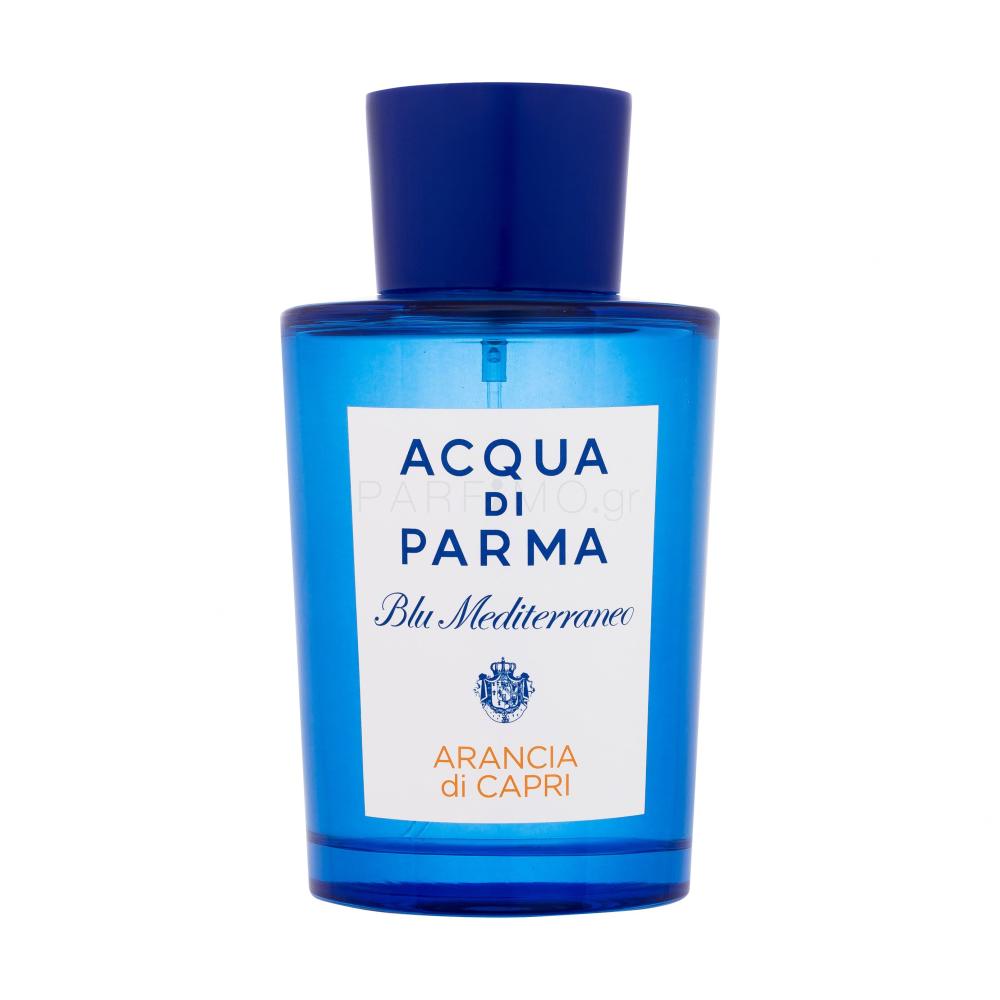 Η Acqua di Parma προσφέρει διάφορες συλλογές αρωμάτων. Μία από αυτές είναι το Blu Mediterraneo. Τα niche αρώματα αυτής της συλλογής είναι εμπνευσμένα από το τοπίο της μεσογειακής περιοχής της Ιταλίας και την όμορφη ατμόσφαιρά της. Η Acqua di Parma Blu Mediterraneo Arancia di Capri είναι ένα από τα επτά αρώματα αυτής της μεσογειακής ομάδας eau de toilette. Χαλαρωτικό, ζωντανό και φωτεινό, το άρωμα ζωντανεύει έναν συνδυασμό αιθέριων ελαίων από πορτοκάλια, μανταρίνια και λεμόνια. Αυτά συνδυάζονται αρμονικά με το άρωμα του κάρδαμου. Στη βάση, θα παρατηρήσετε ένα ελαφρύ άγγιγμα καραμέλας και αισθησιακές νότες μόσχου.