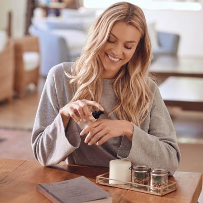 Απλώστε μία αντλία ορού στην παλάμη του χεριού σας και στη συνέχεια κάντε απαλό μασάζ στο δέρμα του προσώπου και του λαιμού.