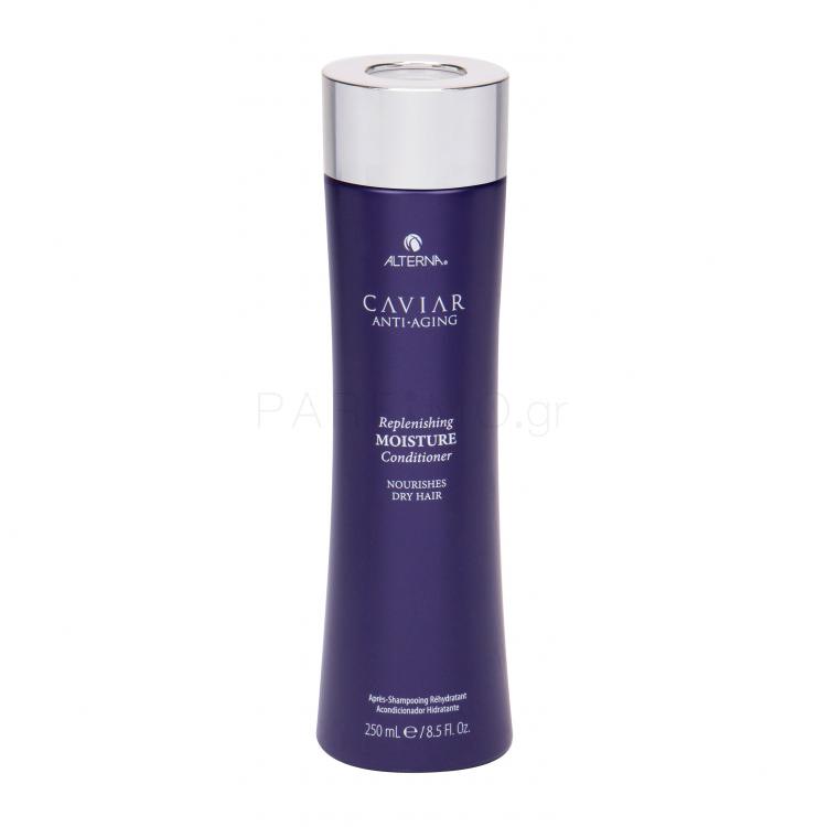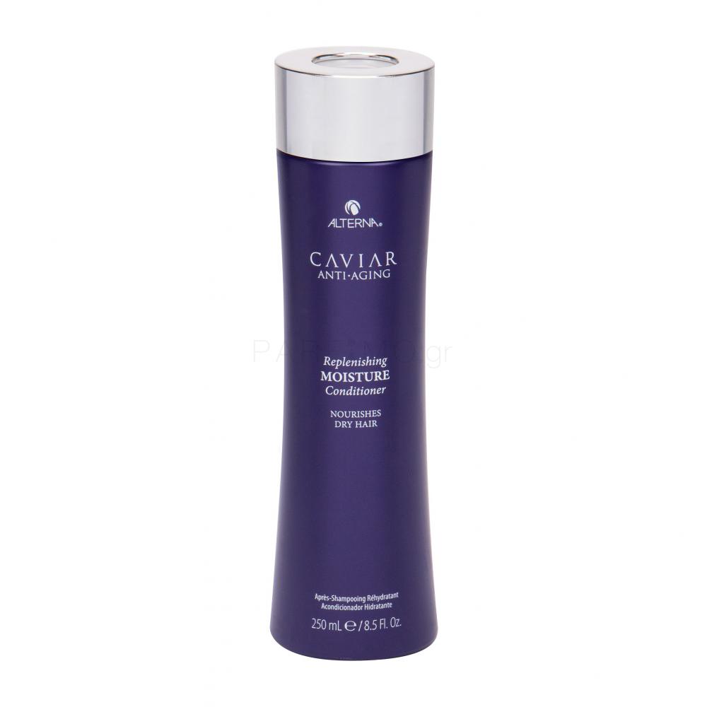 Το μαλακτικό Alterna Caviar Replenishing Moisture ανανεώνει και αναζωογονεί τα ξηρά μαλλιά. Η σύνθεσή του περιέχει Photozyme Complex, το οποίο προστατεύει τα μαλλιά από τη φθορά. Το εκχύλισμα χαβιαριού και η βιταμίνη C ενισχύουν και θρέφουν τα μαλλιά.