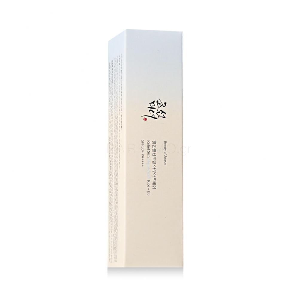 Το Beauty of Joseon Relief Sun Aqua Fresh Rice + B5 SPF 50+ είναι ένα εξαιρετικό ενυδατικό αντηλιακό προϊόν που παρέχει υψηλή προστασία με SPF 50+ PA++++. Αυτό το επαναστατικό προϊόν όχι μόνο προστατεύει το δέρμα από τις βλαβερές ακτίνες UVA και UVB, αλλά και ενυδατώνει, καταπραΰνει και ενισχύει το δέρμα. Περιέχει εκχύλισμα ρυζιού και προβιταμίνη Β5 (πανθενόλη), που βοηθούν στη βελτίωση της ελαστικότητας του δέρματος, διατηρούν την βέλτιστη ενυδάτωση και προστατεύουν από ερεθισμούς. Είναι ιδανικό για καθημερινή χρήση και κατάλληλο για όλους τους τύπους δέρματος, συμπεριλαμβανομένου του ευαίσθητου.