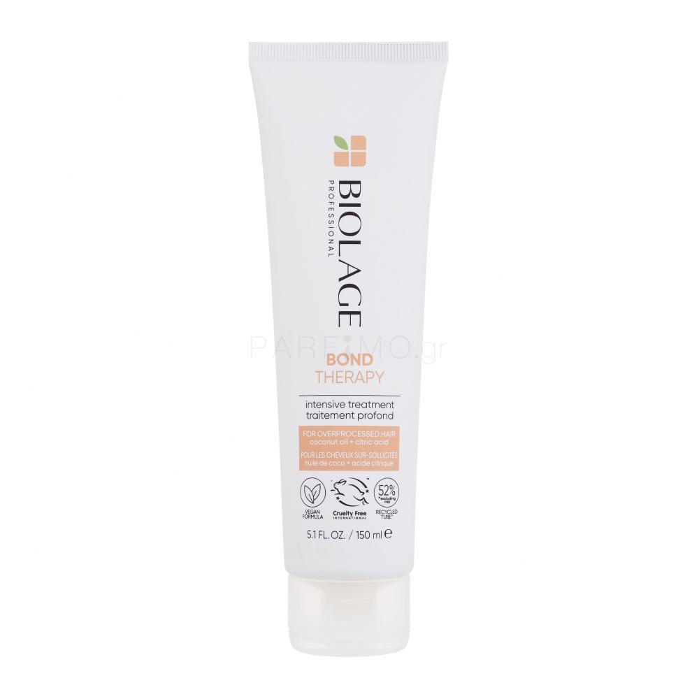 Η Biolage Bond Therapy Intensive Treatment είναι μια μάσκα εντατικής φροντίδας για ταλαιπωρημένα μαλλιά, που χρησιμοποιείται ως θεραπεία πριν από το σαμπουάν. Η σύνθεσή της, εμπλουτισμένη με έλαιο καρύδας και κιτρικό οξύ, συμβάλλει στην επιδιόρθωση και ενίσχυση των ινών της τρίχας.