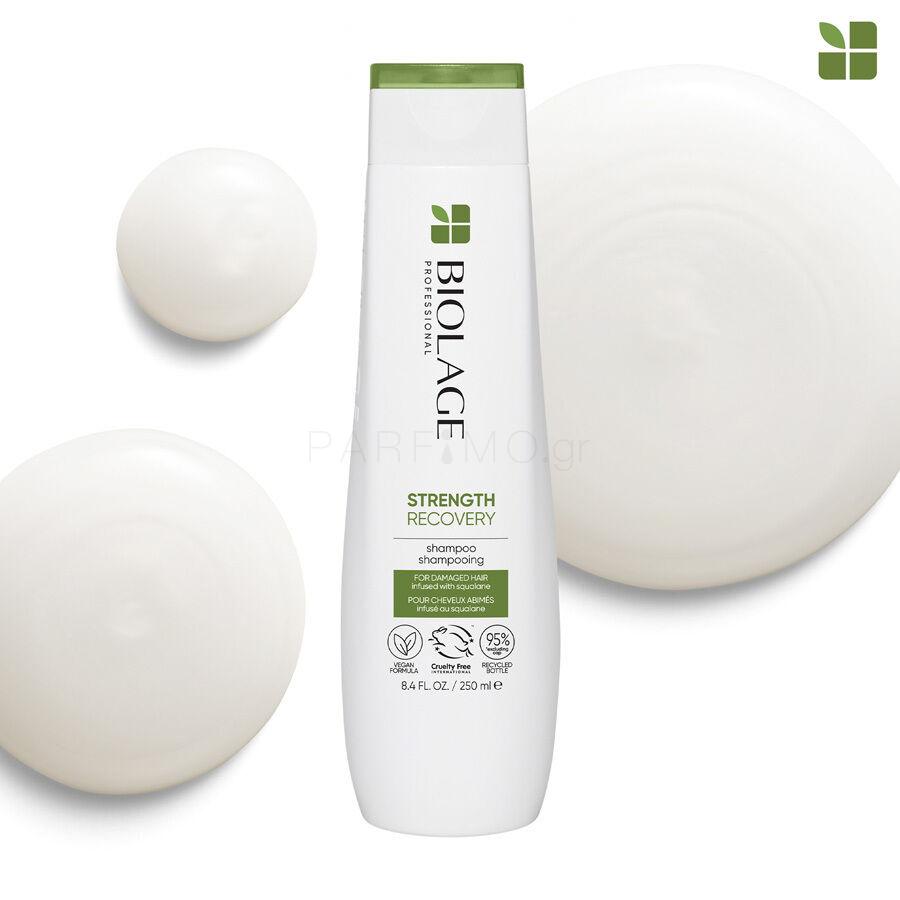 Αποκαταστήστε τη δύναμη των μαλλιών σας με το Biolage Strength Recovery Shampoo, το οποίο περιέχει vegan σκουαλάνιο. Ο πλούσιος αφρός του απομακρύνει απαλά τη συσσωρευμένη βρωμιά, τα υπολείμματα προϊόντων styling και την περίσσεια σμήγματος. Βοηθά στη μείωση του φριζαρίσματος και στην επούλωση της φθοράς των μαλλιών. Αφήνει τα μαλλιά μεταξένια απαλά, λαμπερά και γεμάτα ζωή.