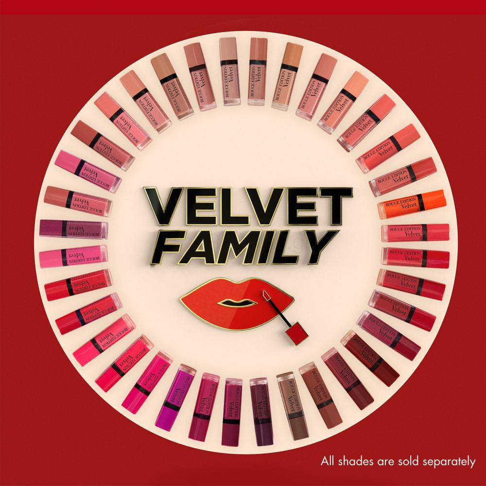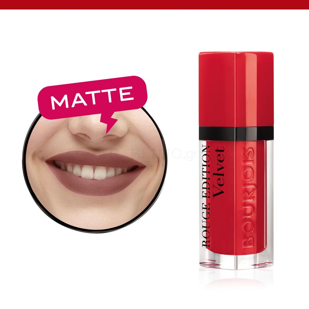 Το BOURJOIS Paris Rouge Edition Velvet ματ κραγιόν μακράς διάρκειας με τη σύνθεσή του, την απαλή υφή του και το πρακτικό απλικατέρ θα κάνει τα χείλη σας να φαίνονται τέλεια και θα προσφέρει φροντίδα όλη την ημέρα χάρη στα θρεπτικά έλαια. Το κραγιόν επιτρέπει το layering, ώστε να μπορείτε να επιλέξετε την ένταση του χρώματος. Με το Paris Rouge Edition Velvet Liquid Matte Lipstick, τα χείλη σας θα βιώσουν μια πραγματικά άνετη αίσθηση.