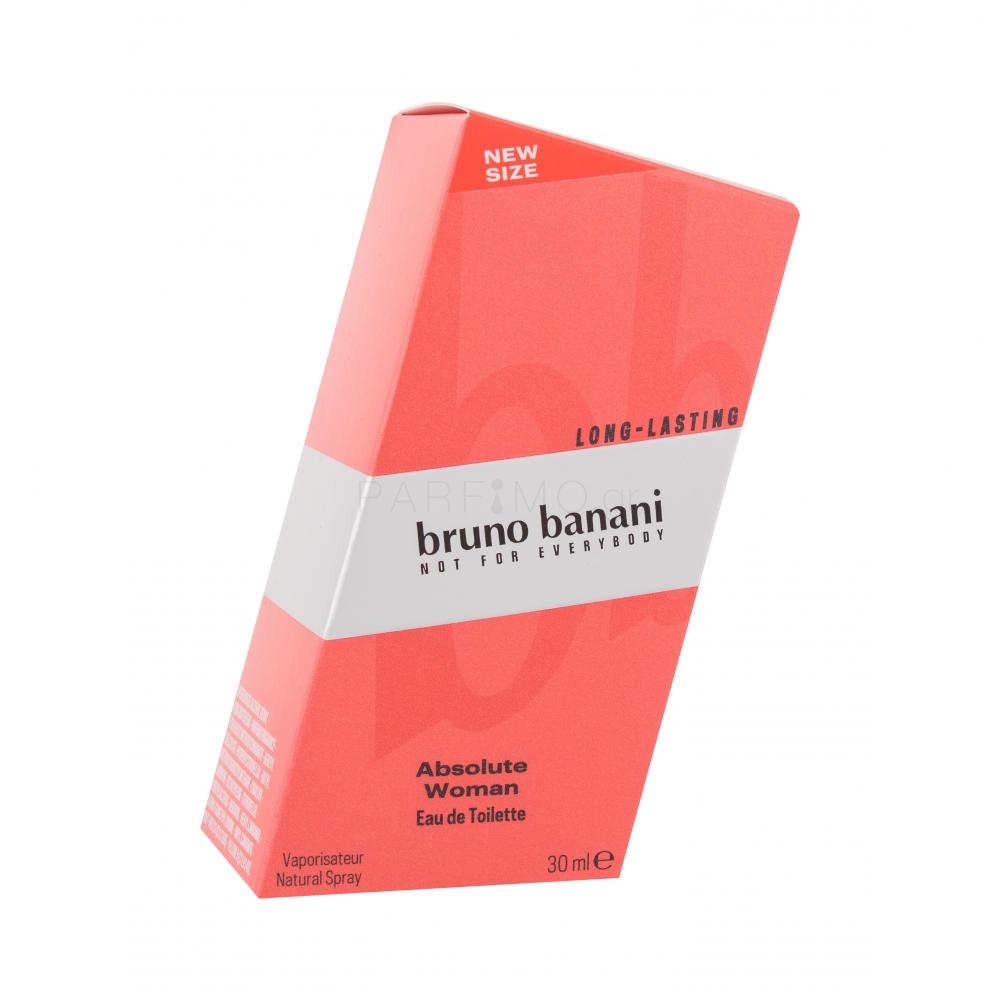 Τοάρωμα Bruno Banani Absolute Woman είναι ένα εκλεπτυσμένο μείγμα παραδοσιακών και μοντέρνων αρωμάτων. Η κεφαλή περιέχει φρουτώδεις νότες γκρέιπφρουτ, περγαμόντο, βατόμουρο και ζουμερό λίτσι, καρυκευμένες με ροζ πιπέρι. Η καρδιά αναπτύσσει μια γεμάτη floral καρδιά: γλυκά αρωματικά άνθη πορτοκαλιάς, ντελικάτο γιασεμί, βασιλικό τριαντάφυλλο και πορτοκαλί κατιφέ. Η αισθησιακή βάση δημιουργείται από τη βασίλισσα των μπαχαρικών βανίλια, πατσουλί, μόσχο, κεχριμπάρι, βρύα και νότες κέδρου.