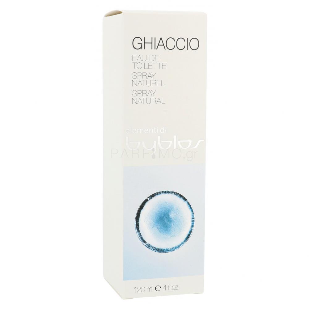 Το γυναικείο άρωμα Byblos Ghiaccio ορίζεται από το αναζωογονητικό περγαμόντο, το νεράντζι και τον υάκινθο στο άνοιγμα. Το μεσαίο στρώμα ή καρδιά συνδυάζει νοσταλγικές νότες νοσταλγικής βιολέτας και νοσταλγικού κρίνου. Η βάση αναμειγνύει το γήινο βετιβέρ, τον αφροδισιακό μόσχο, το μύρο και το σανταλόξυλο. Στη σύνθεση κυριαρχεί το άρωμα του νεραντζιού αναμεμειγμένο με ντελικάτες συμφωνίες από υδρόβια λουλούδια. Το Byblos Ghiaccio μπορεί να φορεθεί όλο το χρόνο, αλλά αποδίδει καλύτερά του τις ζεστές ανοιξιάτικες και καλοκαιρινές ημέρες.
