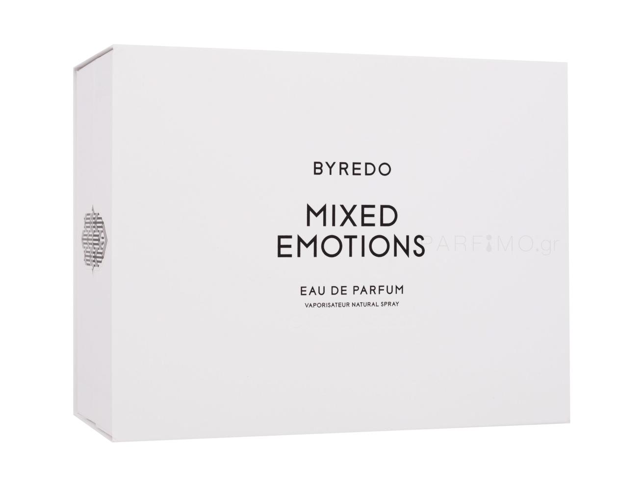 Ο Ben Gorham, ιδρυτής και δημιουργικός διευθυντής της BYREDO, ενθαρρύνει τους ενδιαφερόμενους να εξερευνήσουν τα νέα αρώματα και τις επιδράσεις τους. Το BYREDO Mixed Emotions Eau de Parfum (2021) αντλεί έμπνευση από τα συναισθήματα των σύγχρονων ανθρώπων και τα εμπνέει σε μια μοναδική σύνθεση. Ήδη από τα πρώτα λεπτά μπορείτε να απολαύσετε το άρωμα του τσαγιού maté και του μαύρου φραγκοστάφυλου που βοηθούν να ηρεμήσει το μυαλό σας. Σταδιακά, θα βιώσετε ένα ενδιαφέρον μείγμα από ξυλώδεις και γήινες συμφωνίες. Αφήστε το BYREDO Mixed Emotions να σας ταξιδέψει στον κόσμο των συναισθημάτων!