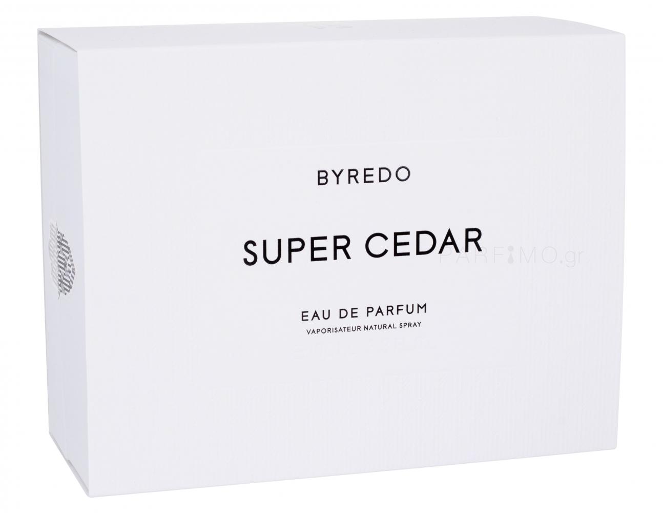 Αν ψάχνετε για ένα άρωμα που σας επιτρέπει να ξεχωρίζετε από το πλήθος και δεν αφήνει το περιβάλλον σας αδιάφορο, δεν πρέπει να χάσετε την προσοχή σας από τα πολυτελή αρώματα της σουηδικής μάρκας BYREDO. Αυτή η μάρκα φέρνει μοναδικά niché αρώματα που θα καλύψουν τις απαιτήσεις ακόμη και των πιο απαιτητικών πελατών. Ανακαλύψτε τη μαγεία του αρωματικού eau de parfum BYREDO Super Cedar, το οποίο θα σας φέρει πιο κοντά στο άρωμα των κέδρων της Βιρτζίνια, οι οποίοι εκτιμώνται για το εκπληκτικό τους ύψος, την εξαιρετική τους ποιότητα και τη μυρωδιά του ξηρού ξύλου, η οποία θα σας μεταφέρει μια επίσκεψη σε ένα δάσος με άρωμα ξύλου. Αυτό το εξαιρετικό ξυλώδες floral άρωμα μόσχου λανσαρίστηκε το 2016.