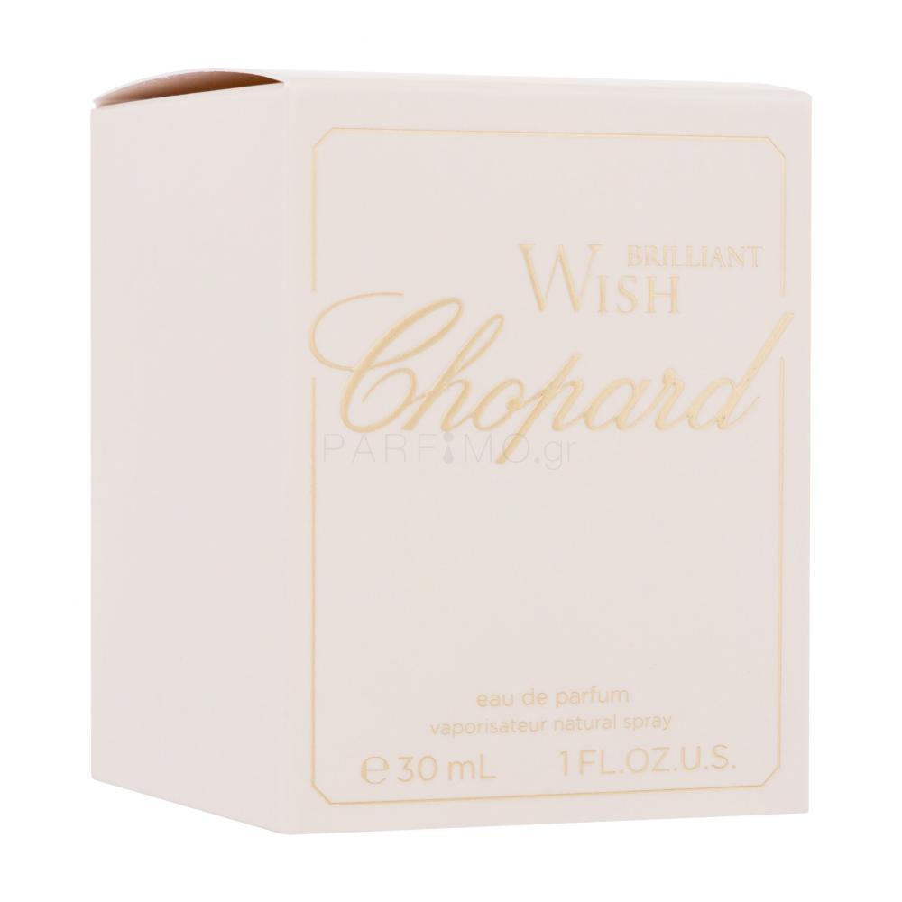 Tυλίξτε τον εαυτό σας με ένα χρυσό πέπλο αρώματος... Μαγευτείτε με το Chopard Brilliant Wish eau de parfum, ένα μαγικό γυναικέιο άρωμα εμπνευσμένο από τα λαμπερά διαμάντια των πολυτελών κοσμημάτων Chopard. Σας χαρίζει ένα αρωματικό άρωμα που μοιάζει με κόσμημα και θα σας κάνει να λάμψετε σε κάθε παρέα. Το άρωμα Brilliant Wish μπορεί να φορεθεί όλο το χρόνο και όλη την ημέρα. Αφήστε τη διάθεση σας να αποφασίσει αν και που θα το φορέσετε.