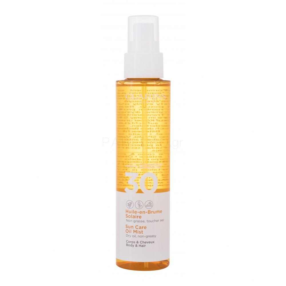Ιδανική αντηλιακή προστασία για το σώμα και τα μαλλιά Clarins Sun Care Oil Mist SPF30 σε μορφή σπρέι. Το δέρμα σας θα προστατεύεται από τις βλαβερές επιδράσεις του ήλιου, θα ενυδατώνεται και θα αποκτά όμορφο μαύρισμα.