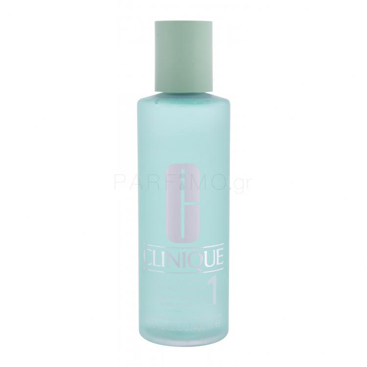 Ο καθαρισμός είναι το δεύτερο βήμα της ρουτίνας φροντίδας του δέρματος 3 βημάτων. Η Clinique 3-Step Care Skin Clarifying Lotion 1 (1 = ξηρή και πολύ ξηρή επιδερμίδα) όχι μόνο καθαρίζει, αλλά έχει και ένα απαλό απολεπιστικό αποτέλεσμα που φωτίζει όμορφα την επιδερμίδα.