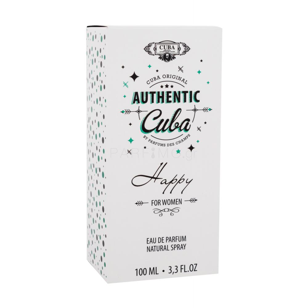 Ακόμα κι αν είστε μια σύγχρονη γυναίκα με δραστήριο τρόπο ζωής, αποζητάτε επίσης ρομαντικές στιγμές που κάνουν την καρδιά σας να λιώνει. Ολοκληρώστε τις με το Cuba Authentic Happy Eau de Parfum, ένα αισθησιακό άρωμα με ένα πλήθος από τρυφερά λουλούδια και νότες εσπεριδοειδών, μόσχου και βανίλιας. Το μείγμα αρωμάτων Cuba Authentic Happy φέρνει καλή διάθεση και αρμονία, τόσο απαραίτητες σε έναν κόσμο με γρήγορους ρυθμούς και ανήσυχο. Παίρνετε αυτό το προσιτό eau de parfum σε ένα μπουκάλι αλουμινίου που προστατεύει τέλεια το μείγμα αρωμάτων και είναι ελαφρύ, πρακτικό για μεταφορά.