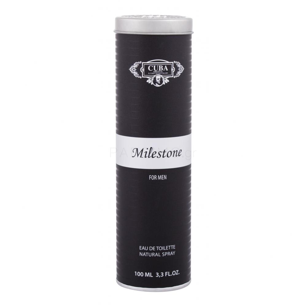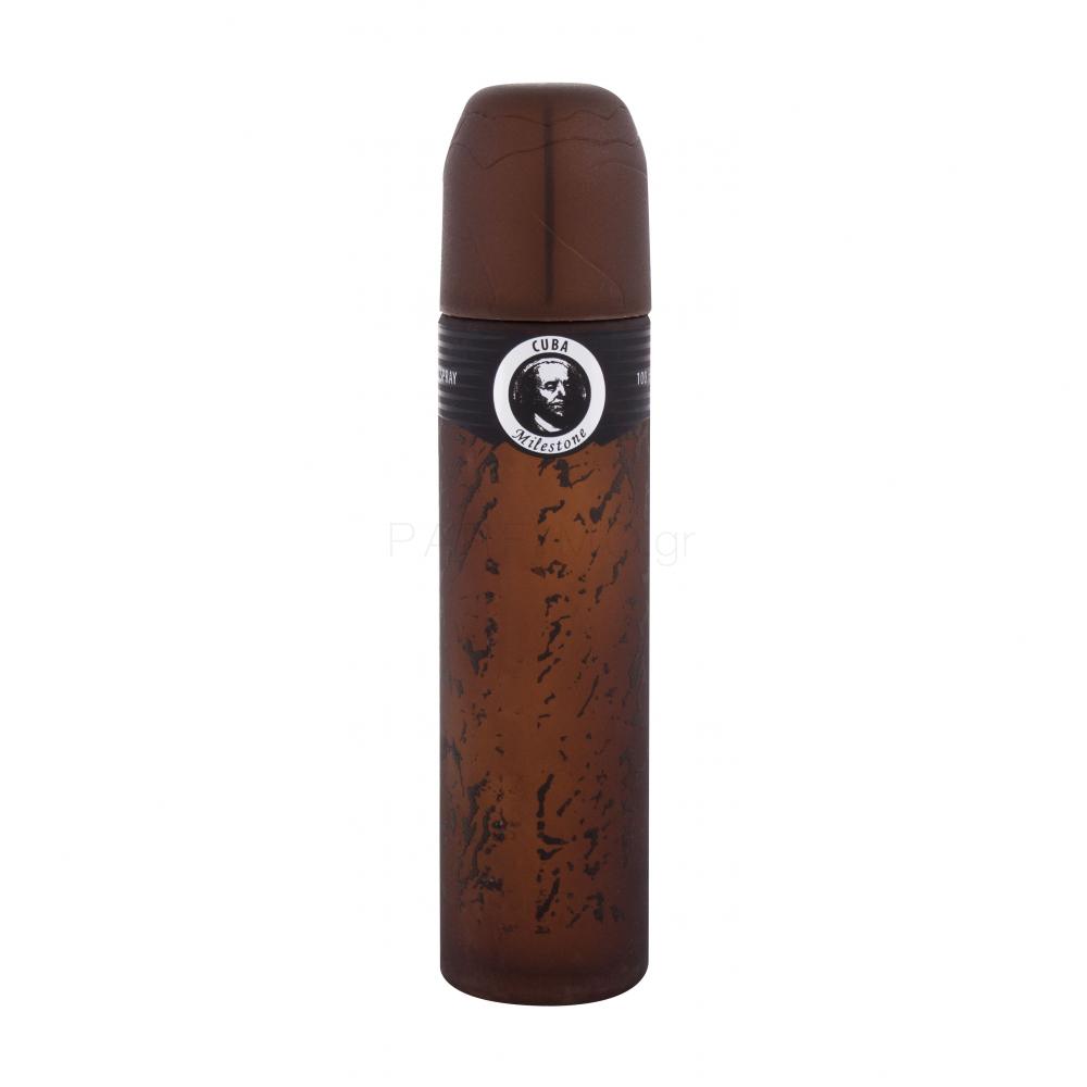 Το Cuba Milestone Eau de Toilette (2020) έχει επεκτείνει τη σειρά των δημοφιλών και προσιτών αξεσουάρ ανδρικών αρωμάτων με ένα ελκυστικό σχέδιο σε μορφή κουβανέζικων πούρων. Σας αποπνέει με τη φρεσκάδα του περγαμόντου και του φραγκοστάφυλου, με την οποία μετά από λίγο αρχίζει να αναμειγνύεται το σαγηνευτικό άρωμα του γιασεμιού, της γλυκιάς βανίλιας και του μόσχου. Είναι ο ζωικός μόσχος μαζί με το γκρίζο κεχριμπάρι που δημιουργεί ένα ακαταμάχητο ίχνος στο δέρμα σας. Η εφαρμογή του Cuba Milestone Eau de Toilette θα πρέπει να ανανεώνεται μετά από μερικές ώρες, χρησιμοποιώντας τις αιματώδεις περιοχές: λαιμός, καρποί, αγκώνες κ.λπ. Χρησιμοποιήστε ένα προϊόν deo για τη μείωση της εφίδρωσης ταυτόχρονα με το eau de toilette. Τα προϊόντα αυτά διατίθενται επίσης από την Κούβα.