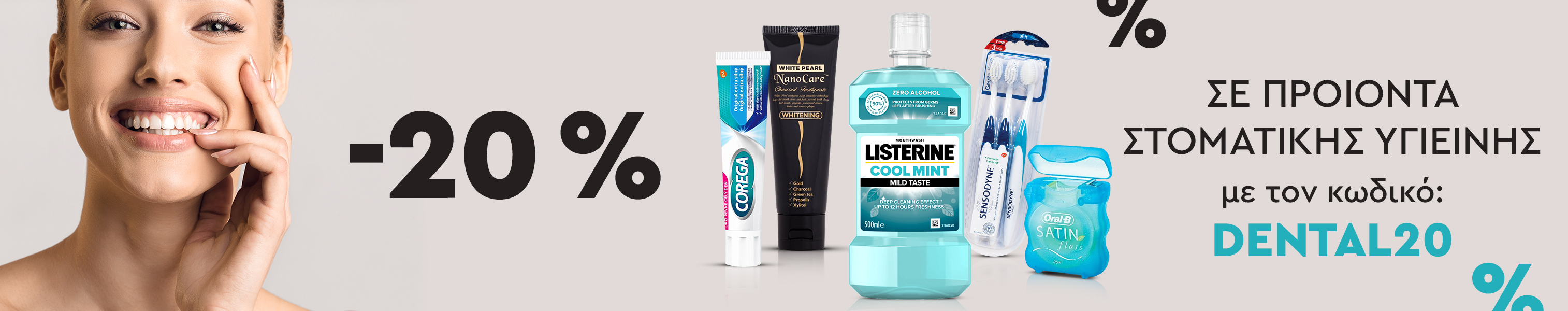 Επωφεληθείτε από την έκπτωση 20% κατά την αγορά προϊόντων οδοντιατρικής φροντίδας από επιλεγμένες μάρκες.