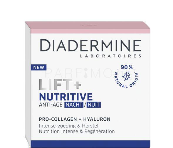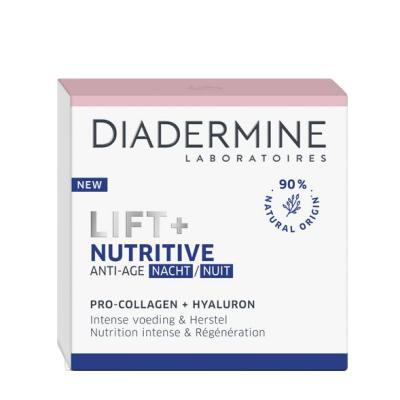 Η Diadermine Lift+ Nutri-Lifting Anti-Age Night Cream θρέφει εντατικά την ξηρή και εύθραυστη επιδερμίδα, συμβάλλοντας στη μείωση των σημαδιών γήρανσης και κόπωσης.