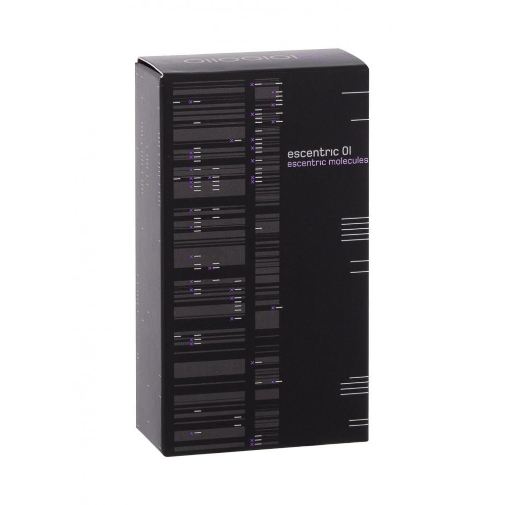 Το Escentric Molecules Escentric 01 eau de toilette είναι ξυλώδες, λουλουδάτο και μοσχοβολιστό. Η σύνθεσή του περιέχει μόνο το μόριο Iso E Super, το οποίο αναμειγνύεται μαζί με το άρωμα φλούδας λάιμ, ίριδας, φρέσκου μόσχου και ηδιόνης. Η τελευταία λέγεται επίσης ότι δρα ως φερομόνη. Ένα άλλο ενδιαφέρον χαρακτηριστικό είναι το μπουκάλι, το οποίο φέρει το όνομά του γραμμένο σε δυαδικό κώδικα (παύλες στα αριστερά).