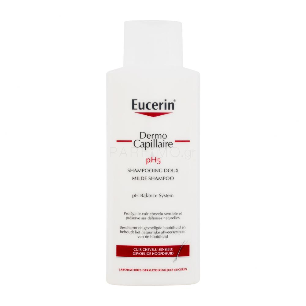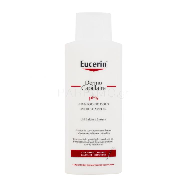 Υποφέρετε από ευαίσθητο τριχωτό της κεφαλής; Επιλέξτε το Eucerin DermoCapillaire pH5 Mild Shampoo, το οποίο απομακρύνει απαλά τους συσσωρευμένους ρύπους, διατηρώντας παράλληλα την ισορροπία του pH της επιδερμίδας και αποκαθιστώντας τη φυσική της προστασία. Έτσι, μειώνεται η ευαισθησία στις δυσμενείς εξωτερικές επιδράσεις. Προλαμβάνει την ξηρότητα και διατηρεί τα μαλλιά λαμπερά, απαλά και ελαστικά.