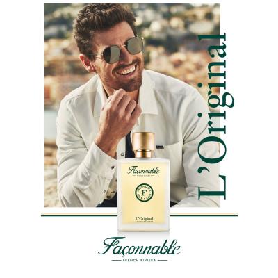 Αφήστε τον εαυτό σας να παρασυρθεί από ένα κύμα φρεσκάδας και ζωντάνιας! Το casual ανδρικό eau de toilette Faconnable L'Original, που αντανακλα το αλάνθαστο άρωμα της Γαλλικής Ριβιέρας και των χωραφιών λεβάντας της Προβηγκίας, θα σας συνοδεύει αξιόπιστα όλο το χρόνο , σε όλες τις δραστηριότητες σας. Εφαρμόστε το eau de toilette στα σημεία παλμού του δέρματος, ιδανικά αμέσως μετά το πρωινό σας ντους και επαναλάβετε την εφαρμογή σε διαστήματα περίπου έξι ωρών κατά τη διάρκεια της ημέρας. Αυτός είναι ο μόνος τρόπος για να μείνετε μόνιμα στο σύννεφο του αρρενωπού, σαγηνευτικού αρώματος του Faconnable L'Original, που θυμίζει μια ηλιόλουστη, απαλά αεράτη μέρα στη γραφική Νότια Γαλλία... Συνώνυμο της αληθινής αρρενωπής γοητείας είναι το Faconnable L'Original!