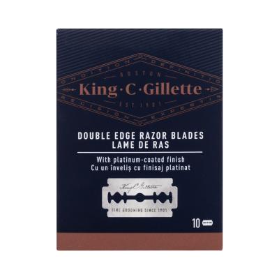 Ένα τέλεια ξυρισμένο πρόσωπο χάρη στις ανταλλακτικές λεπίδες Gillette King C. Double Edge Safety Razor Blades, οι οποίες ταιριάζουν απόλυτα στην ξυριστική μηχανή King C. Gillette. Ο ενισχυμένος με πλατίνα ανοξείδωτος χάλυβας παρέχει επιπλέον αντοχή και μειωμένη τριβή κατά το ξύρισμα.