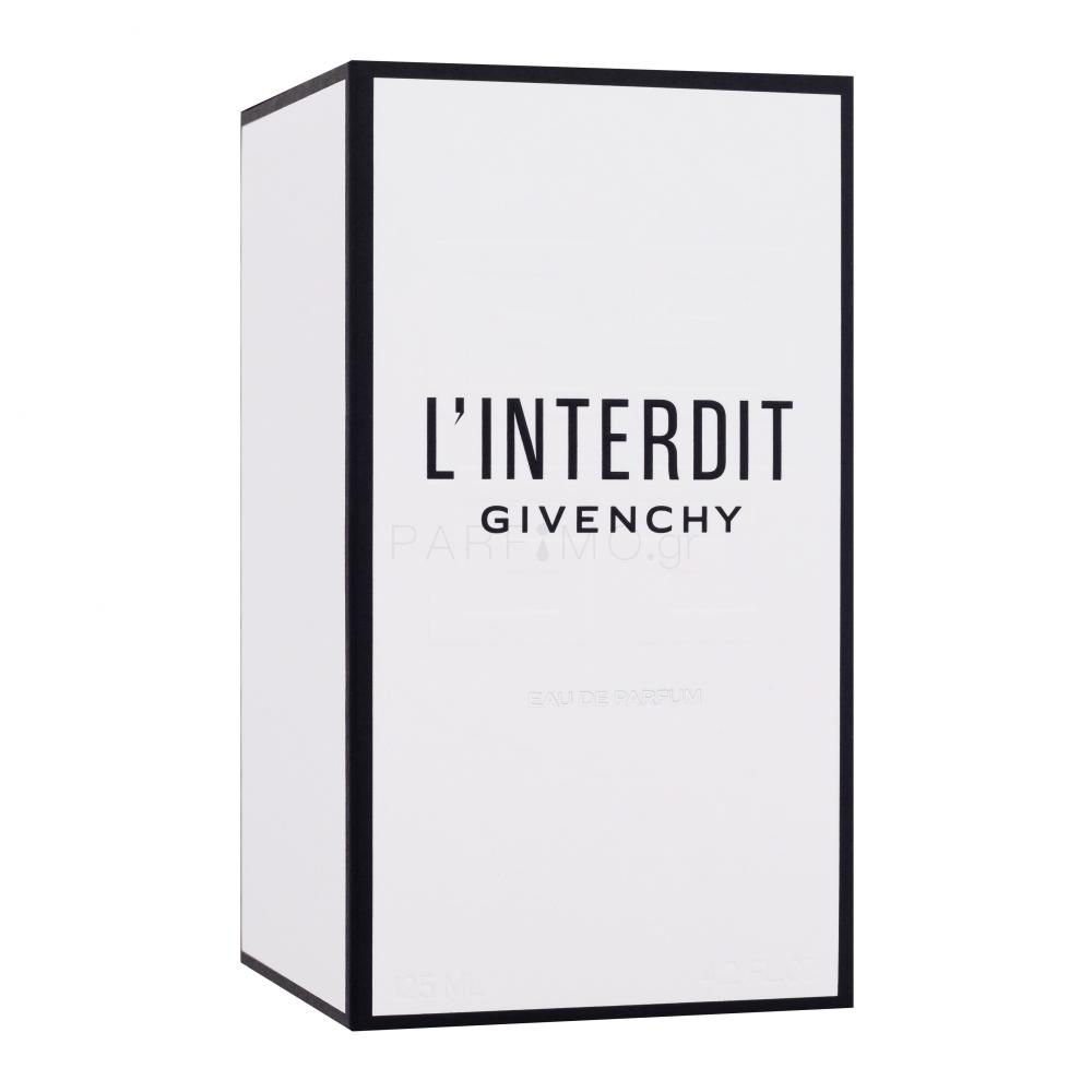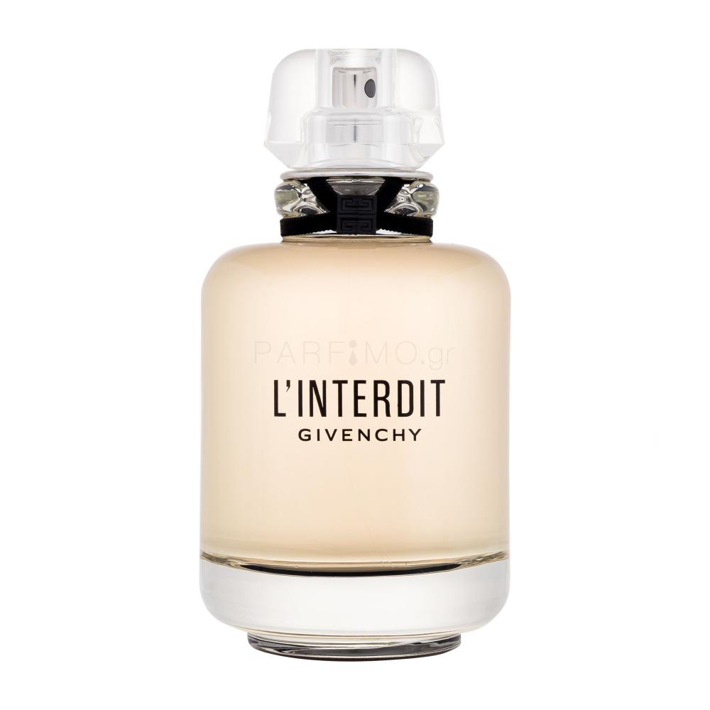 Το Givenchy L'Interdit ανοίγει με νότες περγαμόντου, αχλαδιού και κερασιού. Γιασεμί, τουμπερόζας και άνθη πορτοκαλιάς στην καρδιάς του . Τα σαγηνευτικά λευκά άνθη εμπλουτίζονται από γευστική καραμέλα, πατσουλί, βανίλια, ambroxan και βετιβέρ στο τελείωμα.