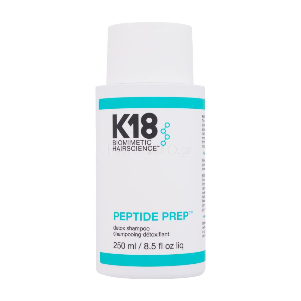 Η συσσώρευση προϊόντων, μετάλλων, ορυκτών από σκληρό νερό και σμήγματος μπορεί να βαραίνει τα μαλλιά και να τα καταστρέφει. Το σαμπουάν βαθύ καθαρισμού K18 Peptide Prep Detox Shampoo απομακρύνει αποτελεσματικά τους ρύπους, τα έλαια, τις σιλικόνες και τα υπολείμματα προϊόντων και ανοίγει τους φραγμένους θύλακες για υγιή μαλλιά.