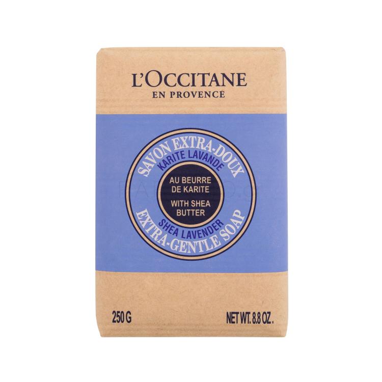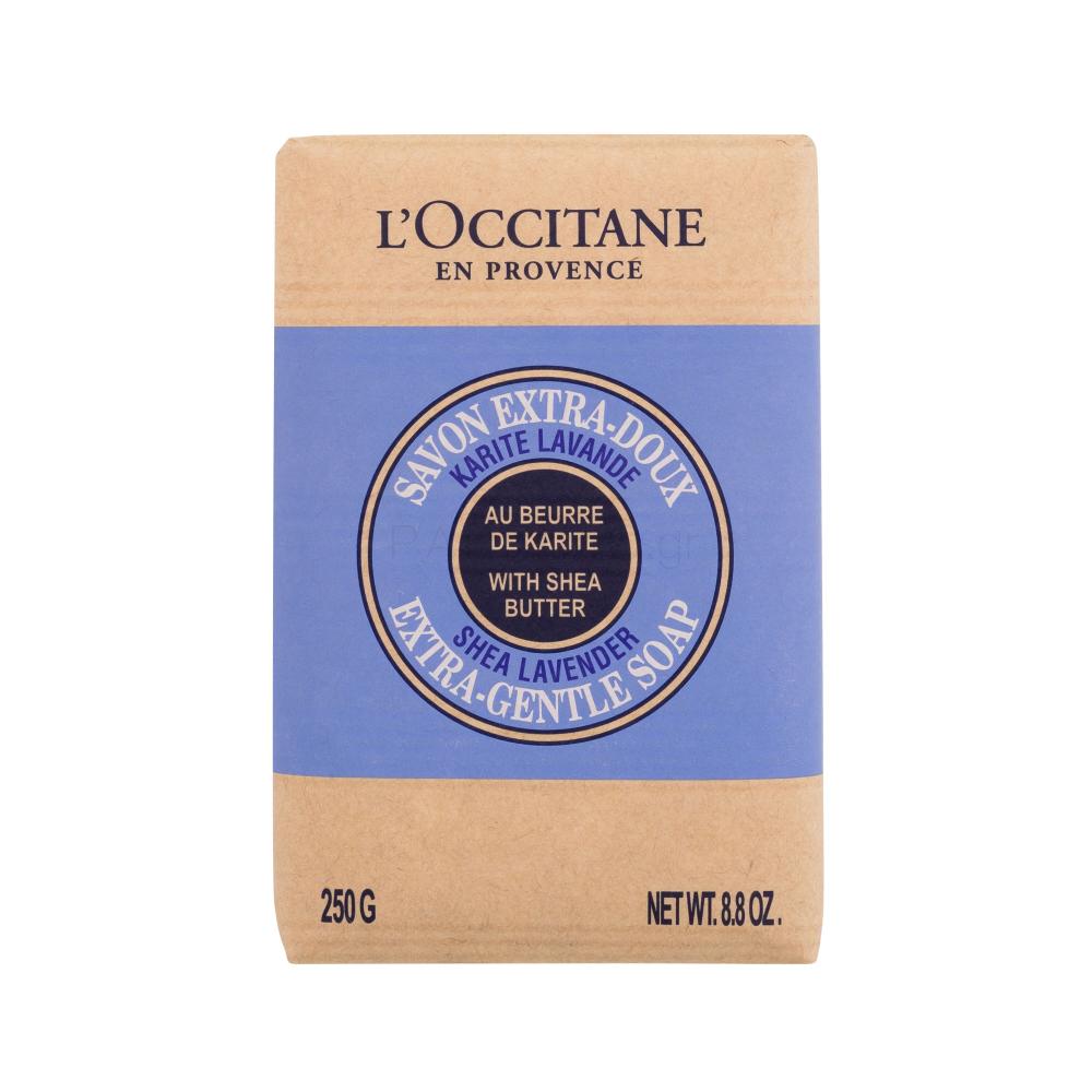 Shea Butter Lavender Extra-Gentle Soap - ένα δημοφιλές στερεό σαπούνι με βούτυρο καριτέ από τη διάσημη μάρκα φυσικών καλλυντικών L'Occitane, εμπλουτισμένο με αιθέριο έλαιο λεβάντας, το οποίο δίνει στο σαπούνι ένα καταπραϋντικό άρωμα.