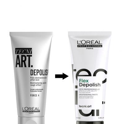 Με την πάστα μοντελοποίησης Tecni.Art Depolish από την L'Oréal Professionnel μπορείτε εύκολα να δημιουργήσετε ατημέλητα και διαφορετικά χτενίσματα. Έχει ισχυρό κράτημα και έντονο ματ αποτέλεσμα που δίνει στα μαλλιά μια τραχιά όψη.