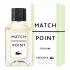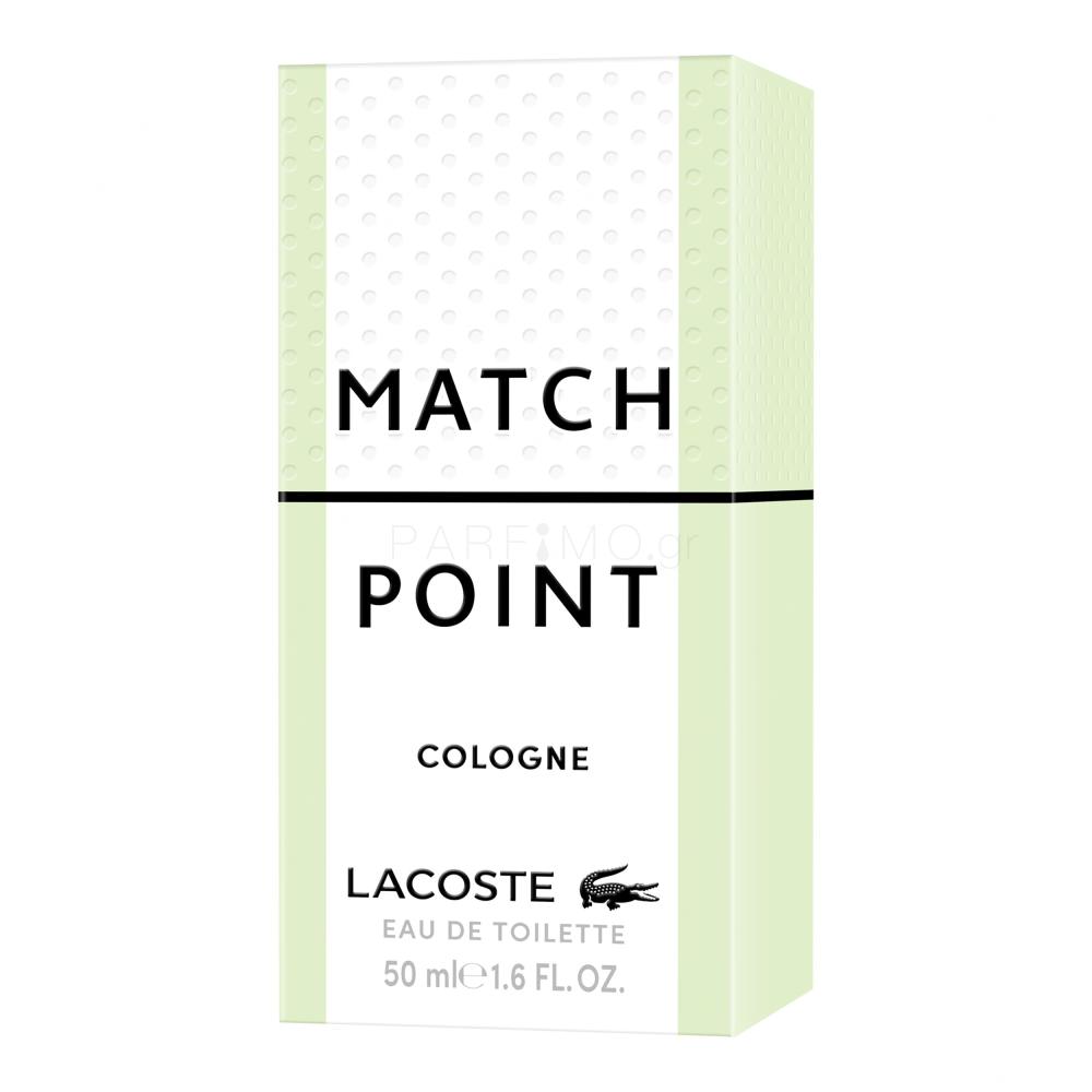 Το αποτέλεσμα των αθλητικών-κομψών αρωμάτων και καλλυντικών της Lacoste, το Match Point ενισχύεται από ένα ευχάριστο πράσινο σχέδιο με στοιχεία από έναν αγώνα τένις. Το eau de toilette που λανσάρεται το 2020, σας καλεί με ένα αρωματικό ταξίδι από βασιλικό και ροζ πιπέρι σε γεντιανό και φασκόμηλο clary sage έως vetiver και cashmeran. Το Lacoste Match Point eau de parfum για άνδρες, που λανσάρεται το 2021, παρουσιάζει έντονες νότες λεμονιού και πικρού, που έρχονται σε αντίθεση με το χαλαρωτικό πατσουλί και το vetiver. Το βασικό άρωμα Lacoste Match Point μπορεί να προστεθεί εδώ με τη μορφή "Cologne". Το eau de toilette και η κολόνια είναι πιο πιθανό να χρησιμοποιηθούν κατά τη διάρκεια της ημέρας, ενώ το eau de parfum, με την υψηλότερη περιεκτικότητα σε αρώματα, προορίζεται για πιο σημαντικές περιστάσεις. Προσθέστε ένα αφρόλουτρο και ένα αποσμητικό και έχετε το τέλειο σετ καλλυντικών για τον δραστήριο άνδρα.