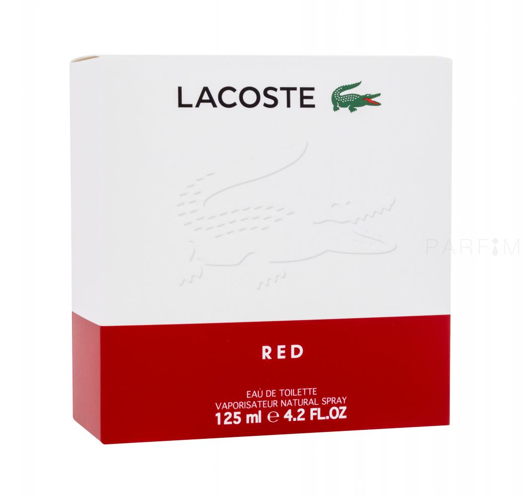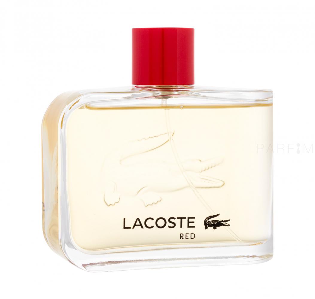 Οι αρχικοί τόνοι αντιπροσωπεύονται από το πράσινο μήλο και το αναμφισβήτητο άρωμα της τούγιας. Οι σαγηνευτικές ξυλώδεις νότες συνεχίζονται στην καρδιά, που αντιπροσωπεύεται από τον κέδρο και το έλατο και συμπληρώνεται από το μυστηριώδες άρωμα του γιασεμιού (που εκτιμάται σε ορισμένους πολιτισμούς για τα αφροδισιακά του αποτελέσματα). Οι τελευταίες ανδρικές νότες είναι ένας συνδυασμός πατσουλί, βετιβέρ και αισθησιακού μόσχου. Το ανδρικό άρωμα Lacoste Red (Edt) κυκλοφόρησε το 2004, αλλά εξακολουθεί να προτιμάται για τον διαχρονικό συνδυασμό αρωματικών συμφωνιών.