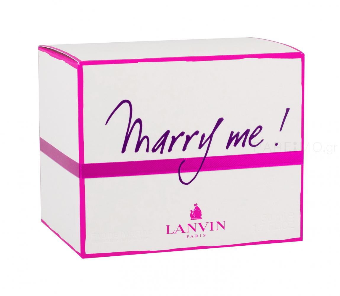Το μήνυμα του Lanvin Marry Me! είναι σαφές. Το άρωμα είναι ένα ελιξίριο αγάπης και ξεχειλίζει από τρυφερότητα και ρομαντισμό. Το άρωμα απλά φωνάζει στον κόσμο τις λέξεις: Marry Me! Η έμπνευση για το άρωμα προήλθε από τον ισχυρό δεσμό μεταξύ μιας γυναίκας και του αρώματος που φοράει. Τα αρώματα κρύβουν αμέτρητες ποσότητες συναισθημάτων και χρειάζεται η παροιμιώδης σπίθα και η χημεία για να κάνει μια γυναίκα να επιλέξει ένα άρωμα που τη γοητεύει. Ένα άρωμα πρέπει να γίνει το δεύτερο δέρμα μιας γυναίκας, να την ακολουθεί σαν σκιά της, προκαλώντας της μια αίσθηση ευτυχίας και χαράς. Το άρωμα Lanvin Marry Me! σας χαρίζει ένα χαρούμενο χαμόγελο, είναι γεμάτο θηλυκότητα και προκαλεί τα ίδια συναισθήματα που έχετε όταν αγκαλιάζετε ένα αγαπημένο σας πρόσωπο.