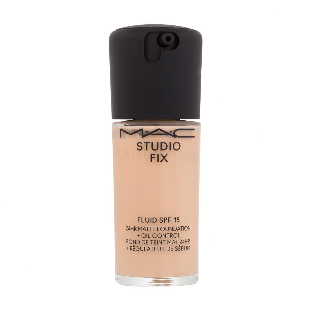 Το ματ makeup MAC Studio Fix Fluid SPF15 εξασφαλίζει απόλυτα αψεγάδιαστη επιδερμίδα όλη την ημέρα. Ο δείκτης προστασίας SPF15 προστατεύει την επιδερμίδα από τα μελαγχρωματικά στίγματα και τα πρόωρα σημάδια γήρανσης, όπως ο σχηματισμός λεπτών γραμμών και ρυτίδων. Οι δυνατότητες μέτριας έως πλήρους κάλυψης του μακιγιάζ καλύπτουν όλες τις ατέλειες της επιδερμίδας. Χαρίστε στον εαυτό σας μια αίσθηση απόλυτης άνεσης και μια άψογη εμφάνιση με το makeup Fix Fluid.