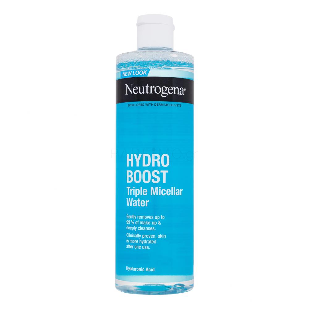 Το Neutrogena® Hydro Boost Triple Micellar Water έχει μια φόρμουλα εμπλουτισμένη με τρεις τύπους μικυλλιακών μορίων, το καθένα με διαφορετικό αποτέλεσμα. Ως αποτέλεσμα, απομακρύνει όλους τους ρύπους και το αδιάβροχο μακιγιάζ από το δέρμα πολύ εύκολα και χωρίς ερεθισμούς. Ταυτόχρονα, χαρίζει στο δέρμα μια μεγάλη δόση ενυδάτωσης με τη βοήθεια του υαλουρονικού οξέος.