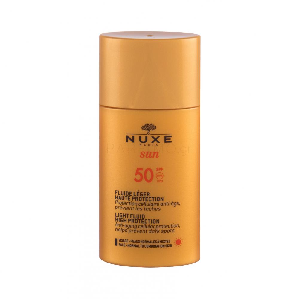 Το NUXE Sun Light Fluid SPF50 έχει μια ελαφριά υφή που είναι κατάλληλη για κανονικές και μικτές επιδερμίδες, παρέχοντας ποιοτική προστασία από την υπεριώδη ακτινοβολία, την αφυδάτωση, τις χρωστικές κηλίδες και ικανοποιώντας τις αισθήσεις σας με το ευχάριστο άρωμα λουλουδιών Tiare της Ταΐτης, γλυκού πορτοκαλιού και βανίλιας.