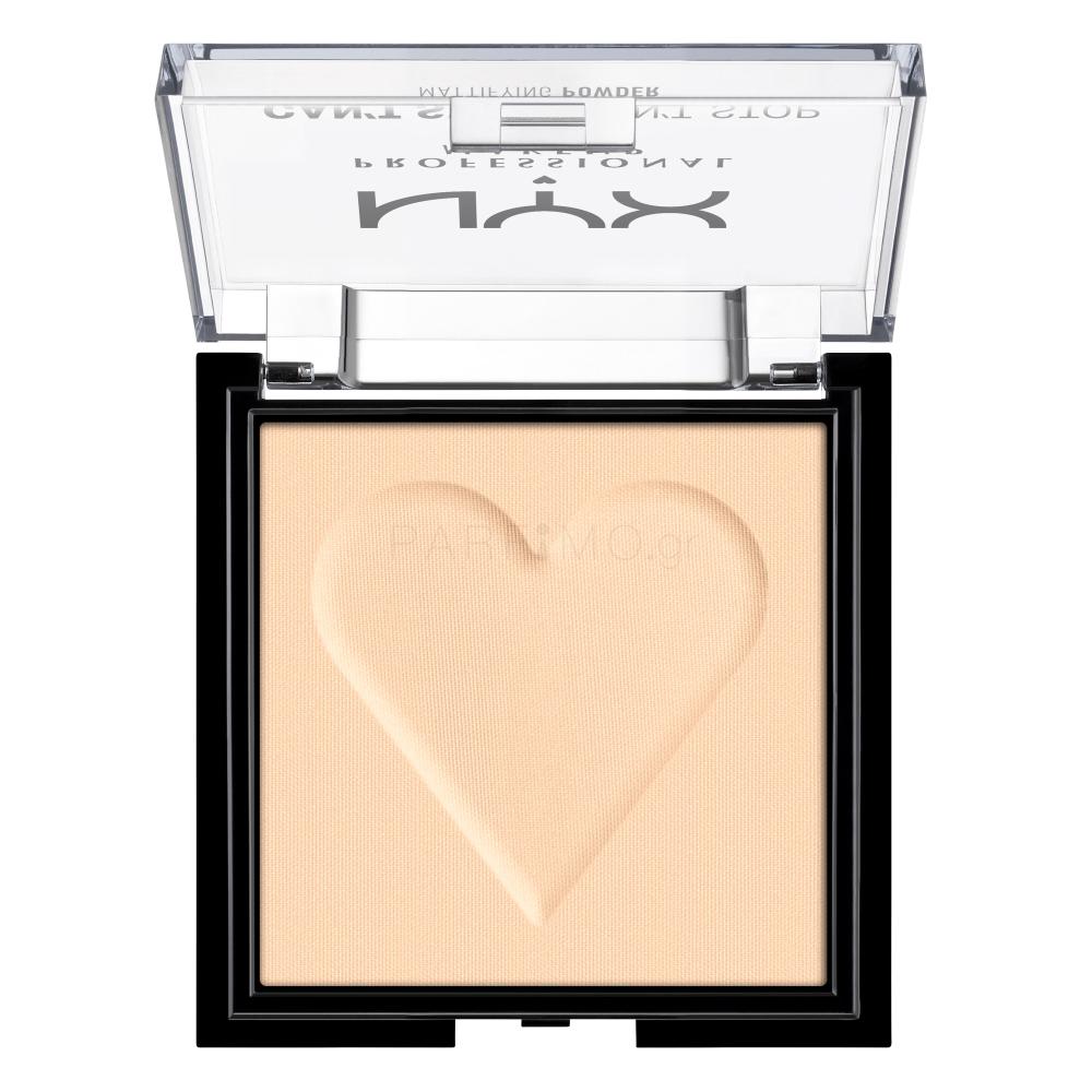 Πώς να απαλλαγείτε από το γυαλιστερό δέρμα; Εύκολα! Δοκιμάστε την NYX Professional Makeup Can't Stop Won't Stop Mattifying Powder. Είναι εμπλουτισμένη με σκόνη ρυζιού που απορροφά το υπερβολικό σμήγμα καθ' όλη τη διάρκεια της ημέρας. Ταυτόχρονα, διατηρεί τη φυσική ισορροπία της ενυδάτωσης και αφήνει το δέρμα λείο και απαλό.
