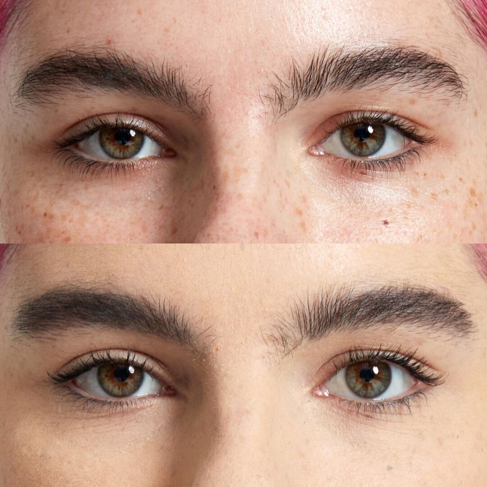 Γεμίστε τις αραιές περιοχές των φρυδιών με ακριβείς κινήσεις του μολυβιού Micro Brow Pencil. Τέλος, γυρίστε το μολύβι από την άλλη πλευρά και χτενίστε με το βουρτσάκι μέσα τα φρύδια.