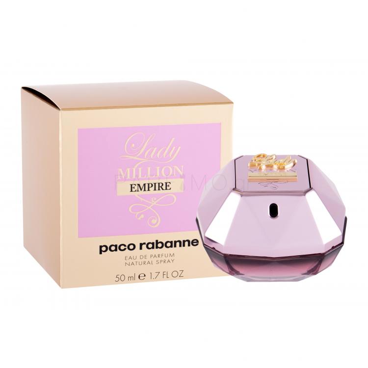 ΤοPaco Rabanne Lady Million Empire Eau de Parfum είναι ταυτόχρονα ένα σύγχρονο άρωμα chypre και ένα κόσμημα. Ένα κομψό άρωμα για όλο το χρόνο για την κυρία του 21ου αιώνα, κάθε μόριο αντανακλά το γυναικείο θάρρος, το σεξαπίλ και την επαναστατικότητα. Προσθέστε το και στη δική σας συλλογή αρωμάτων! Το Lady Million Empire Eau de Parfum ξεχωρίζει στο δέρμα και στο κομοδίνο. Θα προσελκύει πάντα την προσοχή που θέλετε.