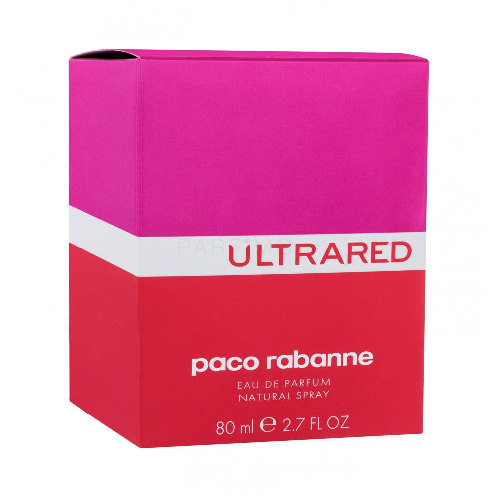 Το γυναικείο eau de parfum Paco Rabanne Ultrared κυκλοφόρησε στην αγορά το 2008 μαζί με την ανδρική έκδοση. Τα αρώματα Ultrared κρύβονται σε μπουκάλια που συνδυάζουν τα χρώματα κόκκινο και ροζ - σύμβολα του ταμπεραμέντου και του πάθους. Το γυναικείο άρωμα Ultrared παρουσιάζει σταφίδα, φράουλα, γλυκύτητα, μπαχαρικά, γιασεμί, βανίλια και κέδρο. Η ανδρική έκδοση χαρακτηρίζεται από κόκκινο πορτοκάλι, πραλίνα, σπόροι τόνκα, βανίλια και πατσουλί. Τα δύο κομμάτια συνδυάζονται υπέροχα μεταξύ τους και θα αποτελέσουν το τέλειο ταίρι και για εσάς.