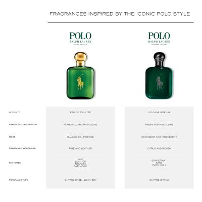 Για τους λάτρεις των αρωμάτων που αναζητούν τη μοναδικότητα και την τελειότητα, υπάρχει το Ralph Lauren Polo Cologne Intense (2021). Συνδυάζει αριστοτεχνικά τη φρέσκια κομψότητα μιας κολόνιας με τη δύναμη και το βάθος ενός άρτια επεξεργασμένου eau de parfum. Το άρωμα ανοίγει με νότες βασιλικού και γκρέιπφρουτ, στη συνέχ συνεχίζει με δροσερό φασκόμηλο στην καρδιά και ακαταμάχητο πατσουλί στο τελείωμα. Το Ralph Lauren Polo Cologne Intense έχει γίνει αμέσως ένα νέο κλασικό άρωμα για μια νέα γενιά. Ανακαλύψτε το κι εσείς!