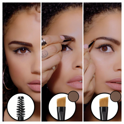 Το σετ περιέχει κρεμώδες κερί και πούδρα φρυδιών. Χρησιμοποιήστε το κερί για να σχηματίσετε τα φρύδια σας και την πούδρα για να τα γεμίσετε και να πετύχετε ένα πιο γεμάτο βλέμμα. Υπάρχουν επίσης δύο πινέλα. Το ένα πινέλο είναι για να στερεώνετε τα φρύδια με διπλή άκρη και το άλλο είναι βουρτσάκι για να τα χτενίζετε.