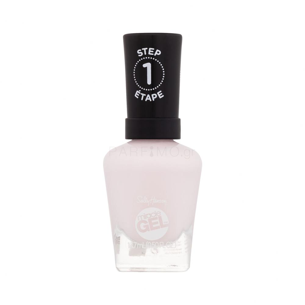 Εφαρμόστε πρώτα 2 στρώσεις βερνικιού τζελ χρώματος Miracle Gel STEP 1 και στη συνέχεια 1 στρώση Sally Hansen Miracle Gel Top Coat STEP 2.