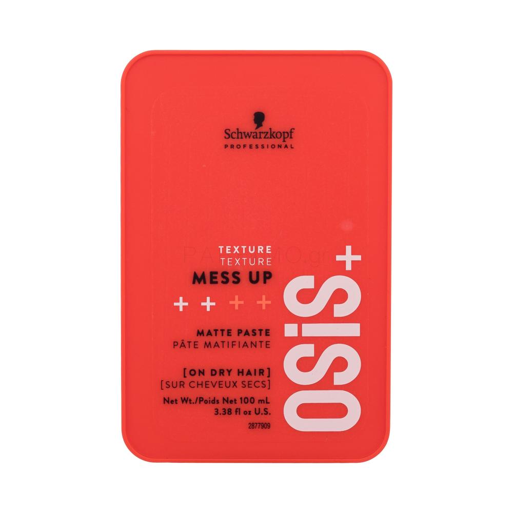 Γίνετε δημιουργικοί στο styling των μαλλιών σας με την Schwarzkopf Professional Osis+ Mess Up Styling Paste. Η φόρμουλα με κερί carnauba και κερί από πίτουρο ρυζιού θα φροντίσει κάθε ατίθασο μαλλί και θα το κρατήσει στη θέση του για μεγάλο χρονικό διάστημα. Θα δώσει στα μαλλιά σας ματ εμφάνιση και θα σας επιτρέψει να τα φτιάξετε όποτε θέλετε μια αλλαγή.