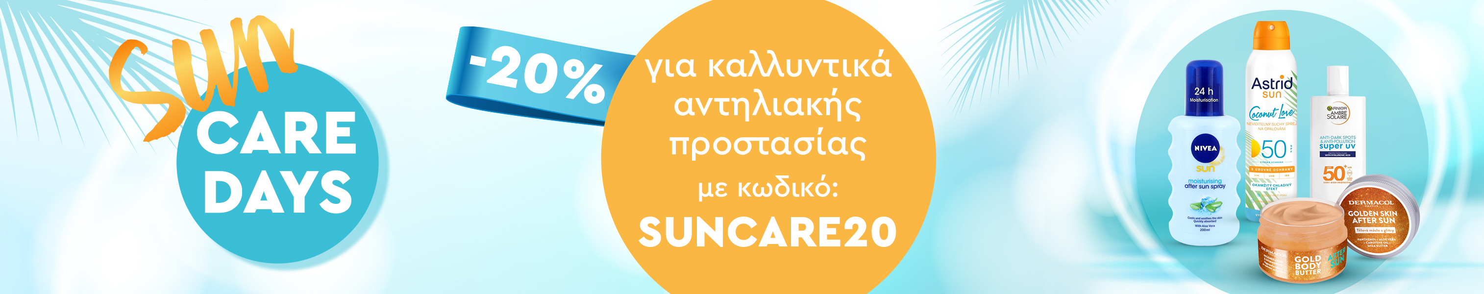 Εισάγετε τον κωδικό: SUNCARE20 στο πρώτο βήμα του καλαθιού αγορών και η έκπτωση θα εφαρμοστεί αυτόματα!