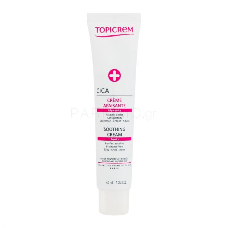 Πολύ δημοφιλής έχει γίνει και η Topicrem CICA Soothing Cream, η οποία προσφέρει έως και 24 ώρες έντονης ενυδάτωσης και καταπράυνσης για το δέρμα. Έχει επίσης σημαντική απολυμαντική, αντιβακτηριακή και αντιμυκητιακή δράση. Το προϊόν είναι υποαλλεργικό, χωρίς parabens, αρώματα, χρωστικές ή σιλικόνες. Όταν εφαρμόζεται στο πρόσωπο, στο σώμα ή στους εξωτερικούς βλεννογόνους, σχηματίζει ένα υγρό, μη κολλώδες και διαφανές επίθεμα.