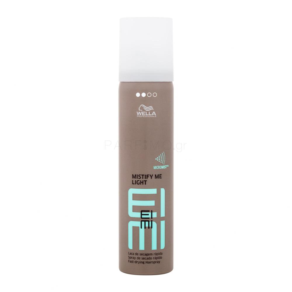 Μπορείτε να απολαμβάνετε ένα τέλειο χτένισμα όλη την ημέρα χάρη στη λακ Wella Professionals Eimi Mistify Me Light. Σταθεροποιεί τα μαλλιά σας για έως και 24 ώρες, ενώ τους αφήνει φυσική κίνηση. Η απαλή εφαρμογή της λακ εξασφαλίζεται απο την τεχνολογία Micromist, η οποία δημιουργεί μια ελαφριά ομίχλη. Θα δώσει λάμψη και απαλότητα στα μαλλιά σας.