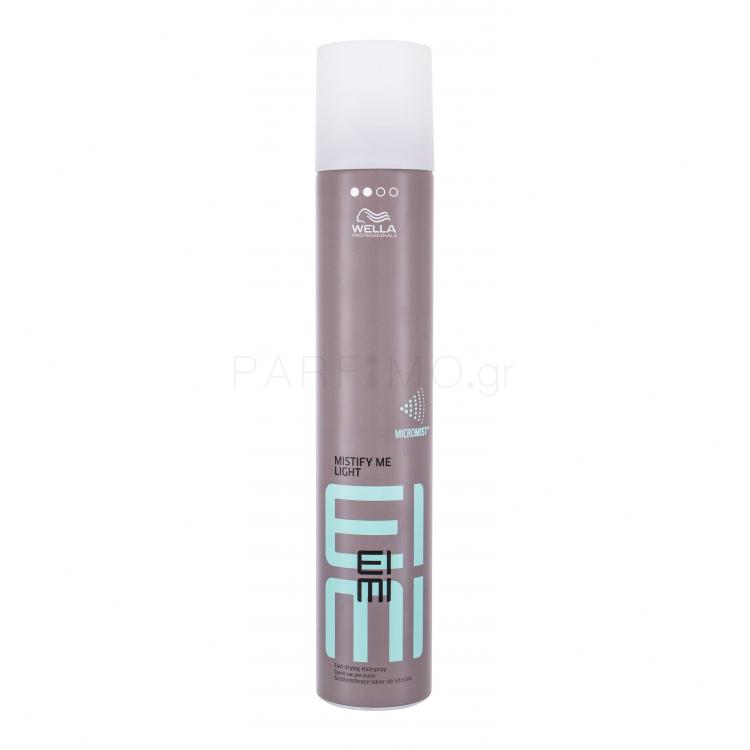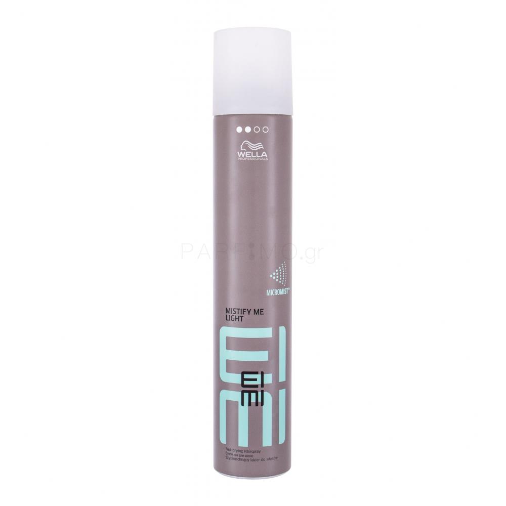 Μπορείτε να απολαμβάνετε ένα τέλειο χτένισμα όλη την ημέρα χάρη στη λακ Wella Professionals Eimi Mistify Me Light. Σταθεροποιεί τα μαλλιά σας για έως και 24 ώρες, ενώ τους αφήνει φυσική κίνηση. Η απαλή εφαρμογή της λακ εξασφαλίζεται απο την τεχνολογία Micromist, η οποία δημιουργεί μια ελαφριά ομίχλη. Θα δώσει λάμψη και απαλότητα στα μαλλιά σας.
