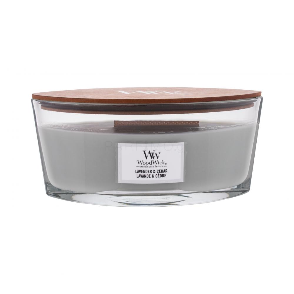 Χαρίστε στον εαυτό σας τη μοναδική εμπειρία του αρώματος που διαχέεται σε όλο το δωμάτιο! Το αρωματικό κερί WoodWick Lavender & Cedar σας καλωσορίζει με άρωμα ροζ πιπεριού, ξύσμα λεμονιού και πράσινα φύλλα. Η λεβάντα, το φασκόμηλο, το κυπαρίσσι και το έλατο ξεχωρίζουν στην καρδιά. Το βασικό στρώμα είναι εμποτισμένο με χαλαρωτικό πατσουλί, λευκό κεχριμπάρι και ελαφρύ ξύλο κέδρου.