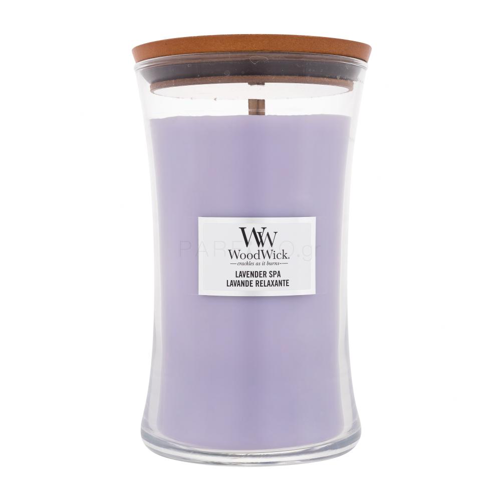 Το αρωματικό κερί WoodWick Lavender Spa είναι κατασκευασμένο από ένα μείγμα υψηλής ποιότητας κεριού παραφίνης και σόγιας με εξαιρετικά συμπυκνωμένα αρώματα. Το καινοτόμο φυτίλι από φυσικό ξύλο της Pluswick® Innovation δημιουργεί τον καταπραϋντικό ήχο της φωτιάς που καίει.