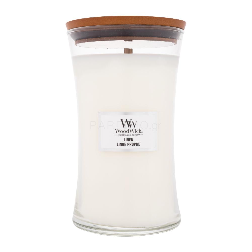 Υπάρχουν πολλές καλές ιδιότητες για τις οποίες οι άνθρωποι περιτριγυρίζονται από τα αρωματικά κεριά WoodWick: υψηλή περιεκτικότητα σε κερί σόγιας, επιλεγμένα συστατικά αρωμάτων, κομψά γυάλινα βάζα, ξύλινα καπάκια ή μοναδικά φυτίλια που τρίζουν σαν φωτιά στο τζάκι... Όλα αυτά και πολλά άλλα είναι που σας προσφέρει το αρωματικό κερί WoodWick Linen. Είναι ακαταμάχητο για την πολύχρωμη απομίμησή του και το αγνό άρωμα λινών - ακριβώς όπως από το κομοδίνο της γιαγιάς. Το άρωμά του φέρνει στο νου εικόνες από φρεσκοπλυμένα λινά που ανεμίζουν στον καλοκαιρινό αέρα. Φέρτε το άρωμα της καθαριότητας και της άνεσης στο σπίτι ή το εξοχικό σας - WoodWick Linen!