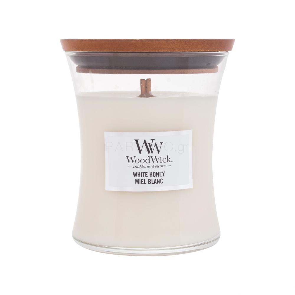 Το αρωματικό κερί White Honey της WoodWick είναι κατασκευασμένο από ένα μείγμα υψηλής ποιότητας παραφίνης και κεριού σόγιας με εξαιρετικά συμπυκνωμένα αρώματα. Το καινοτόμο φυτίλι από φυσικό ξύλο της Pluswick® Innovation δημιουργεί τον καταπραϋντικό ήχο της φωτιάς που καίει.