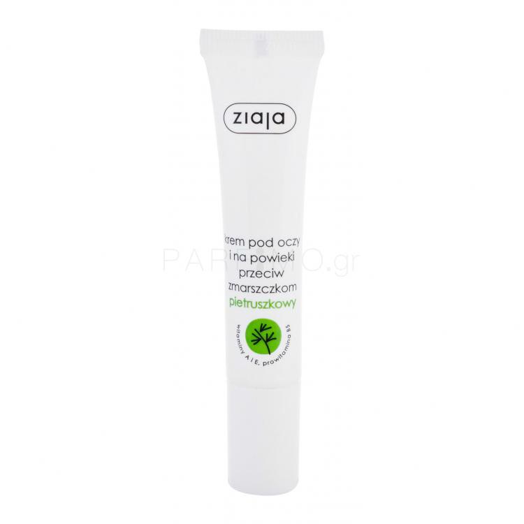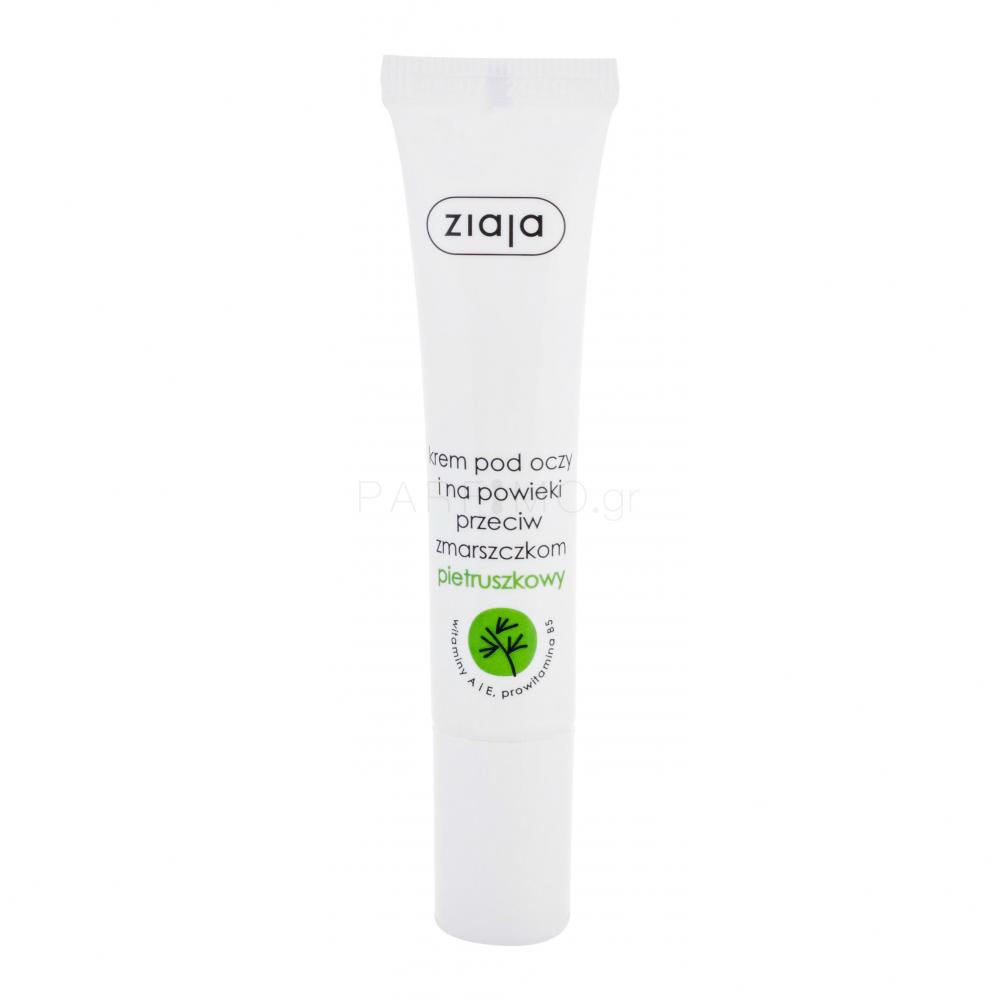 Το δέρμα γύρω απο τα μάτια, το οποίο είναι πολύ ευαίσθητο και λεπτό, αποκαλύπτει πολλά για την ηλικία. Καταπολεμήστε αποτελεσματικά τις ρυτίδες γύρω απο την περιοχή των ματιών με την Ziaja Anti-Wrinkle Eye Cream Parsley. Περιέχοντας έλαιο απο φύλλα μαϊντανού, βιταμίνη Ε και Α και προβιταμίνη Β5, η κρέμα προλαμβάνει την εμφάνιση των ρυτίδων και εξαλείφει τις λεπτές γραμμές. Μειώνει επίσης τους μαύρους κύκλους κάτω απο τα μάτι, συσφίγγει την περιοχή γύρω απο τα μάτια, ενυδατώνει και φωτίζει το δέρμα και αναζωογονεί την περιοχή των ματιών. Η κρέμα, η οποία είναι δερματολογικά ελεγμένη, είναι κατάλληλη για όλους τους τύπους για όλους τους τύπους δέρματος.